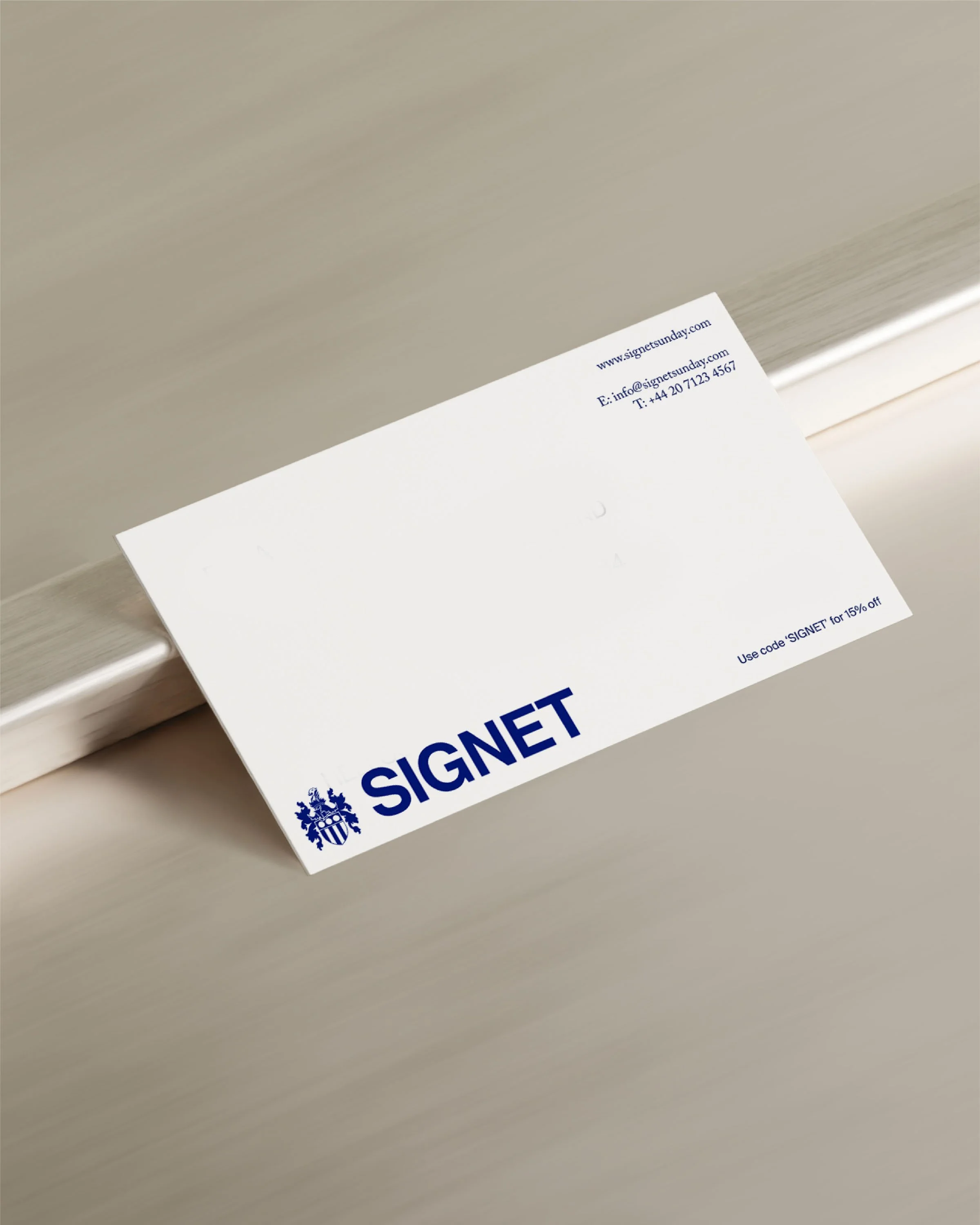 SIGNET’s rebrand was a refined exercise in balance honouring tradition while embracing modernity. We reimagined this legacy brand for today’s fast-moving world, crafting an identity that feels both storied and striking. Inspired by the values of heritage, hierarchy, and belonging, we developed a crest-style brand mark alongside a contemporary sans-serif typographic system to strike the perfect visual harmony. The colour palette, deeply rooted in British heritage, lends an understated elegance that speaks volumes. More than a visual refresh, this was a strategic evolution, one anchored in clarity, consistency, and conviction. From a full logo suite to an adaptable visual language and detailed brand guidelines, every element was built to ensure coherence across all touch points, from digital channels to physical garments.